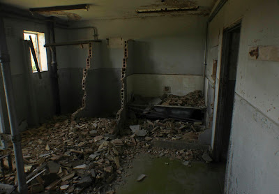 Slipping upstairs to the "MI Room" and the "education centre," I found something quite intriguing. The large rooms had dividing walls made out of wood, and therefore a lot easier to smash than the other walls.
